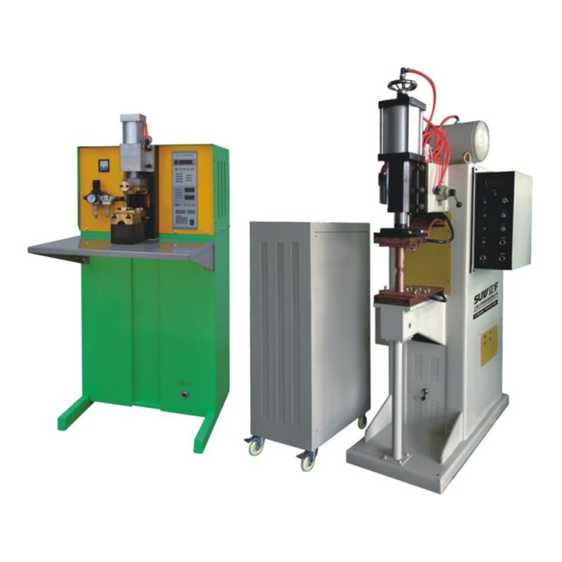 储能点凸焊机是以小功率取用电网能量,储存于电容器中,在短时间内通过阻焊变压器对被焊工件瞬间放电,以产生一个很大的电子脉冲电流进行焊接。